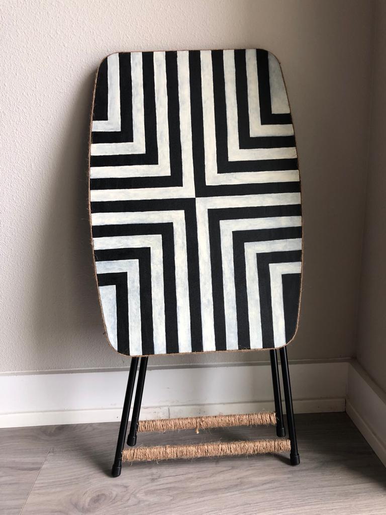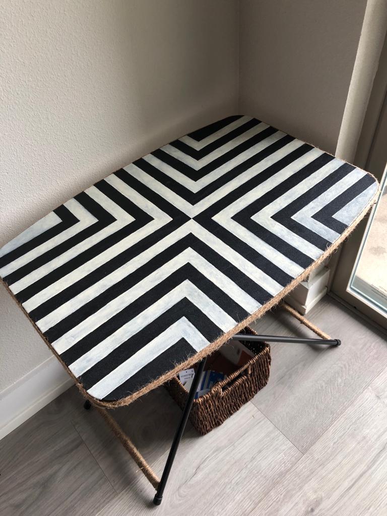 What’s famous about them? Well, they were a very simple idea to execute, but somehow was my most loved piece on the market. I had more than 25 buyers lined up. It made me want to start a stripes on table business (the table was an old TV tray my husband had).