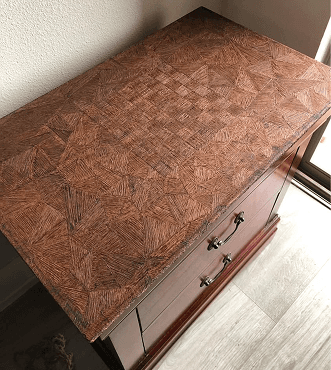 This was when I got my second pyrography pen and decided (for some reason) I should take a perfectly great side table and burn some lines into it. It ended up kind of nice, I like the way the sides of it look. The great thing about this era is I could experiment and make some money without owning any hideous things.