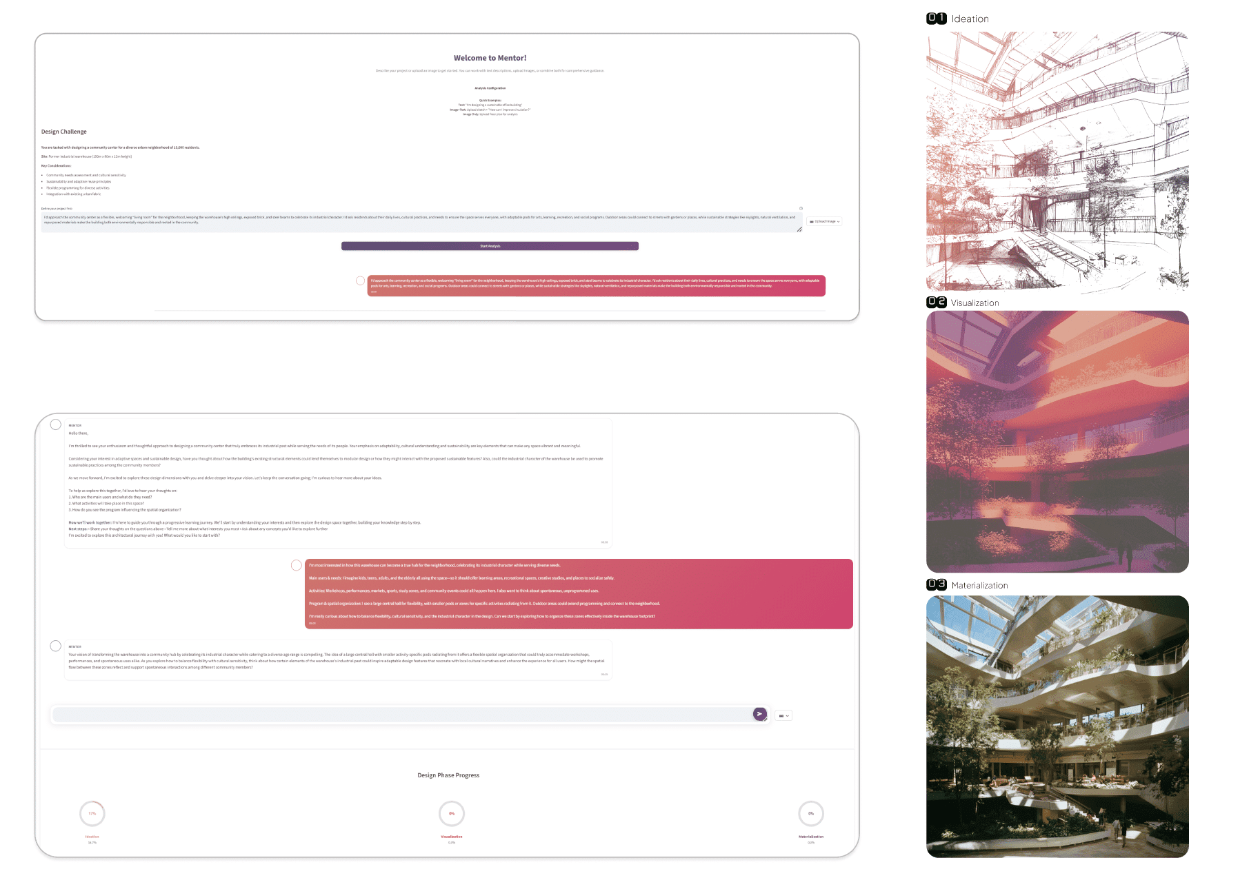 MENTOR is an AI-powered educational system designed to support deeper cognitive engagement in architectural education. Rather than functioning as a question-answering assistant, MENTOR guides students through structured reasoning, dialogue, and visual interpretation to encourage reflection, discovery, and independent thinking.